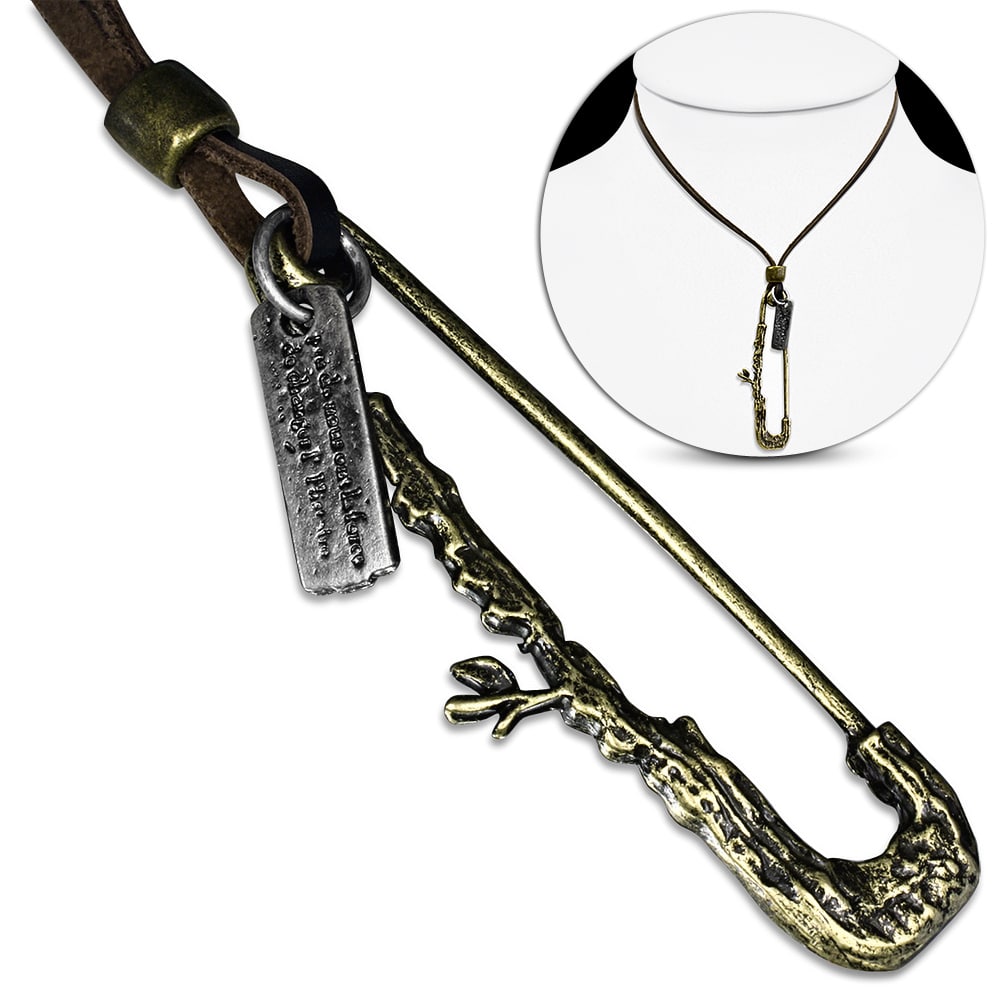 Bőr nyaklánc, gémkapocs alakú dísszel