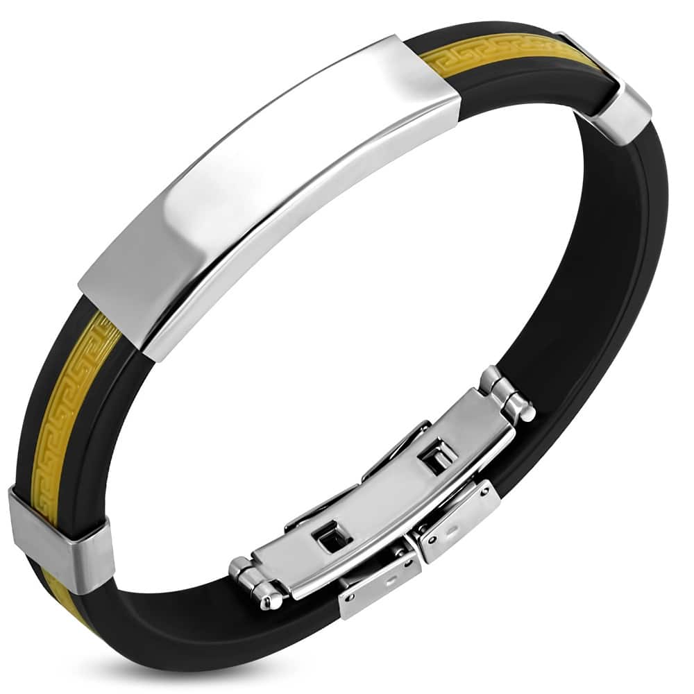 Unity Fekete kaucsuk karkötő ezüst színű nemesacél dísszel, sárga betéttel