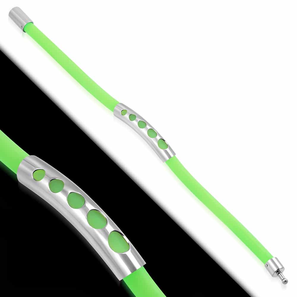 Zöld színű kaucsuk karkötő, nemesacél dísszel