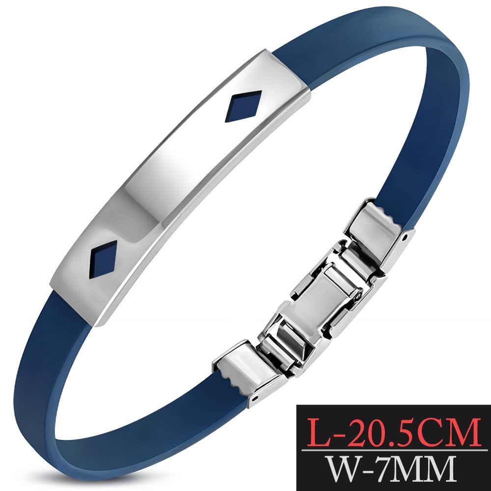 Fekete-fehér kaucsuk karkötő penge formájú nemesacél dísszel