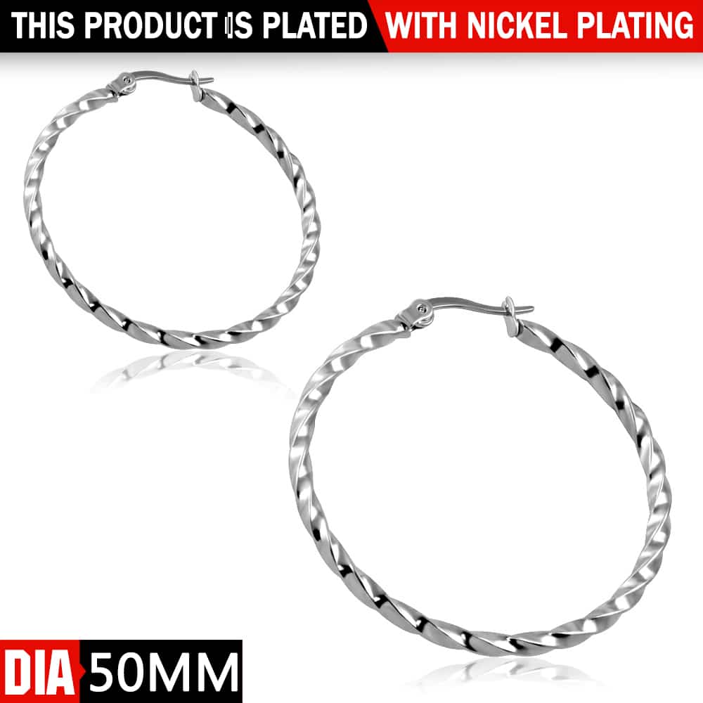 Ezüst színű, csavart nemesacél karika fülbevaló 2.0