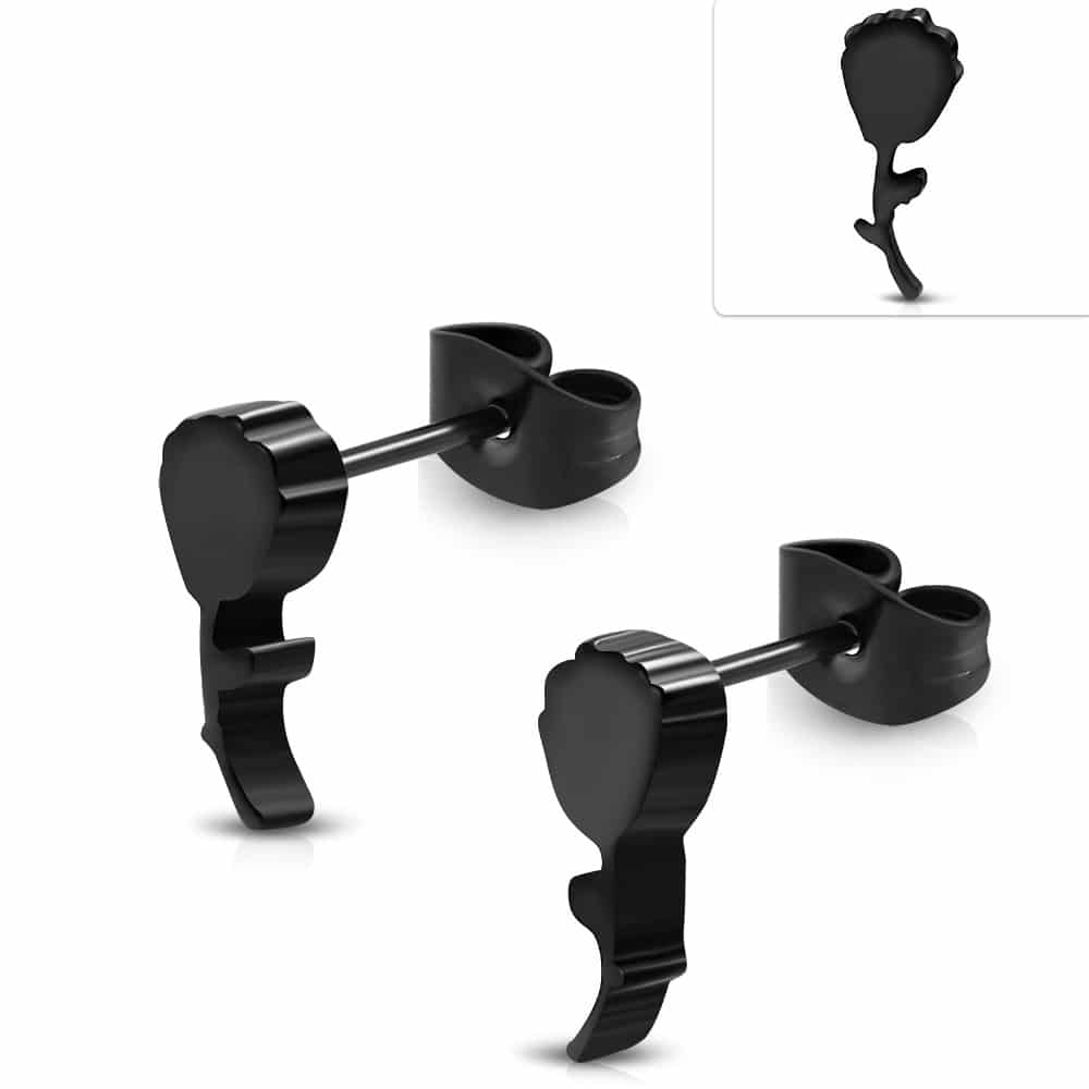 Fekete színű, virág alakú nemesacél fülbevaló