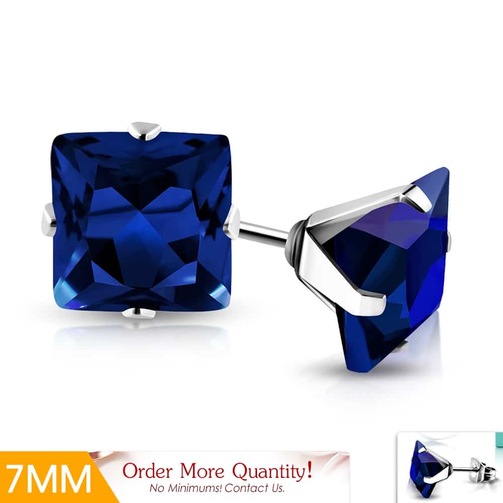 NÉGYZET Blue Crystal nemesacél fülbevaló ékszer – 7 mm