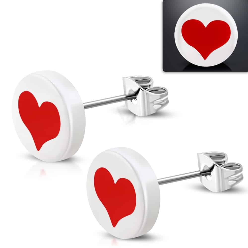 Fehér színű nemesacél fülbevaló, szív mintával