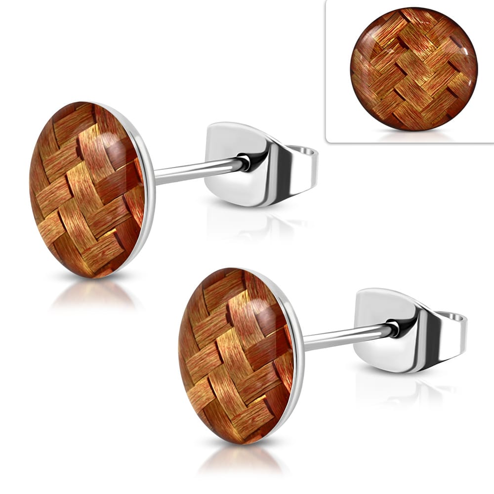 Barna színű nemesacél fülbevaló, kosárfonat mintával