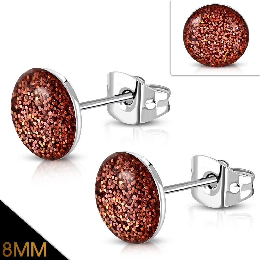 Vöröses barna színű, kristály mintás nemesacél fülbevaló