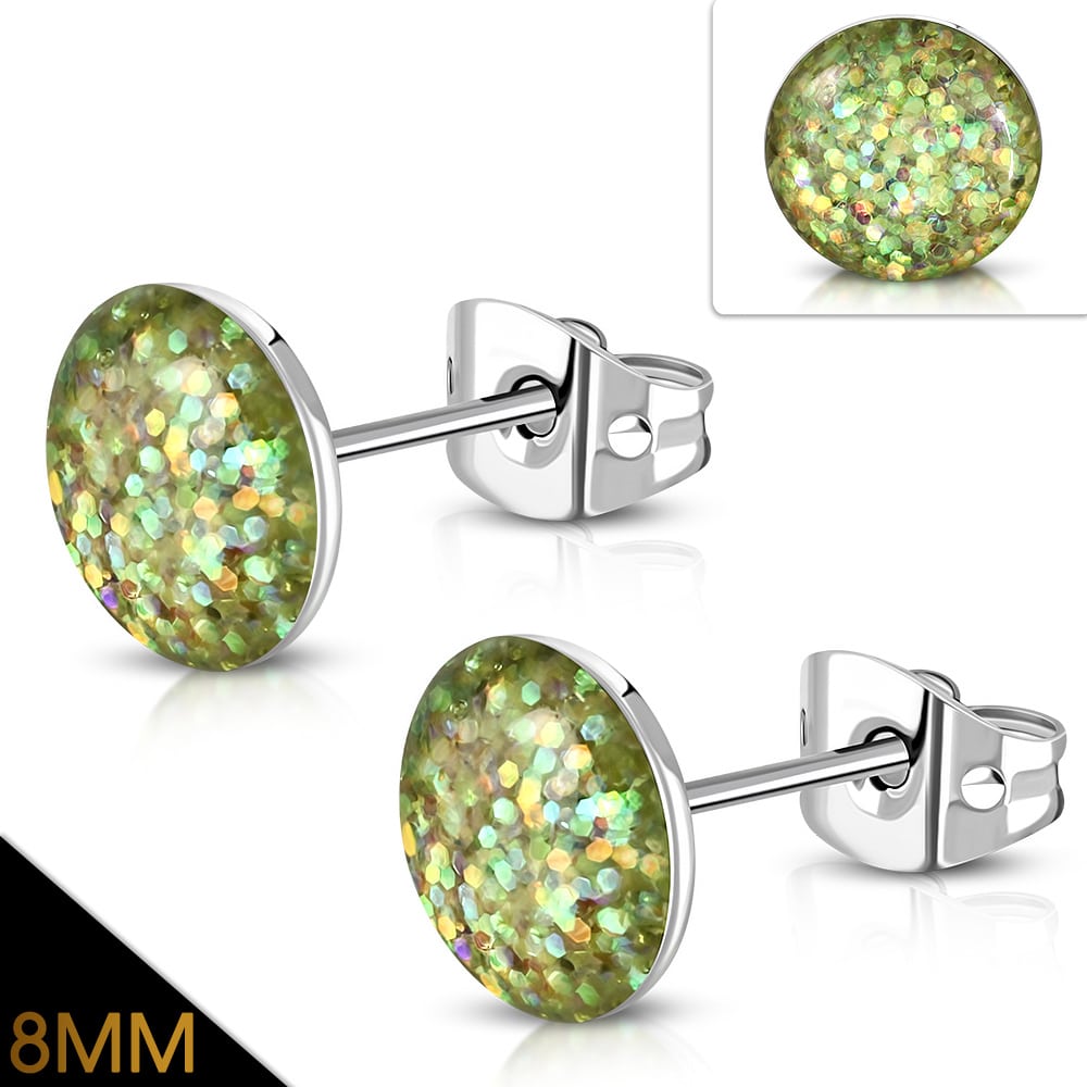 Flake nemesacél fülbevaló – Világos zöld kristálymintás – 8 mm