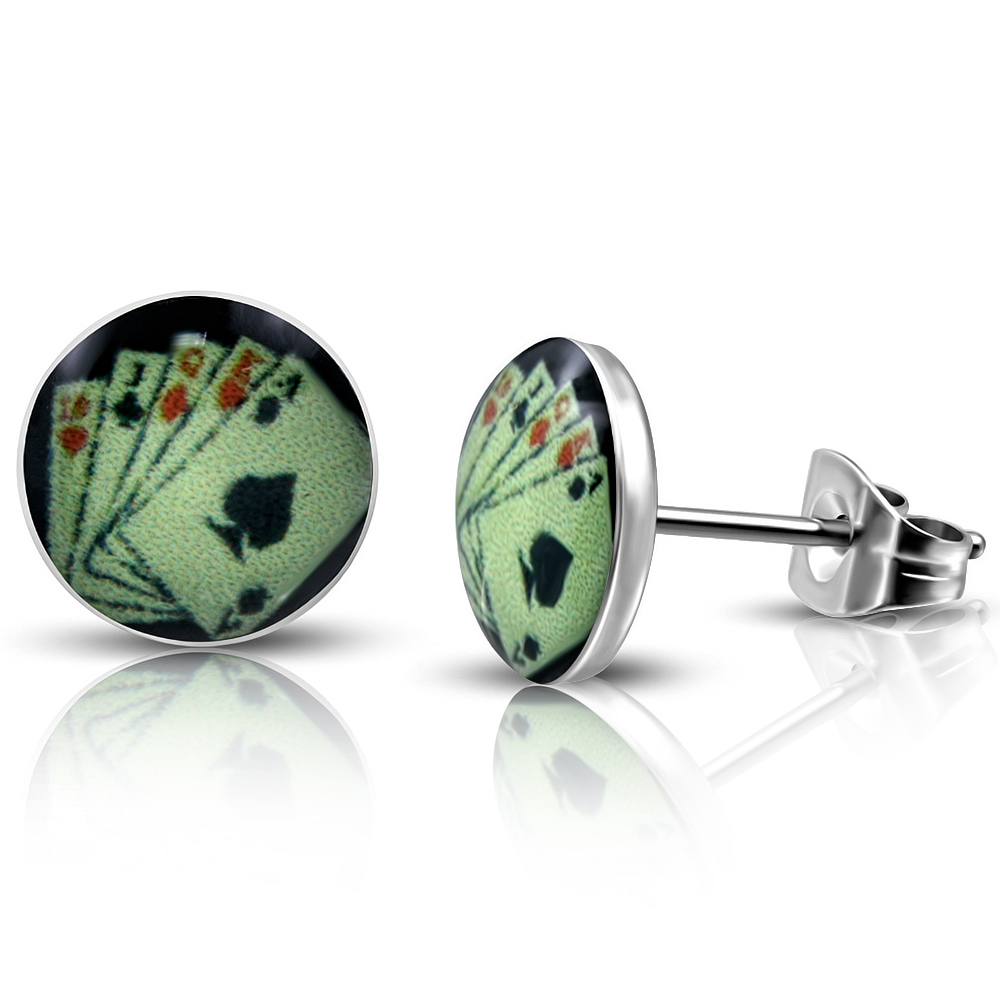 Kártyalap mintájú pont nemesacél fülbevaló ékszer