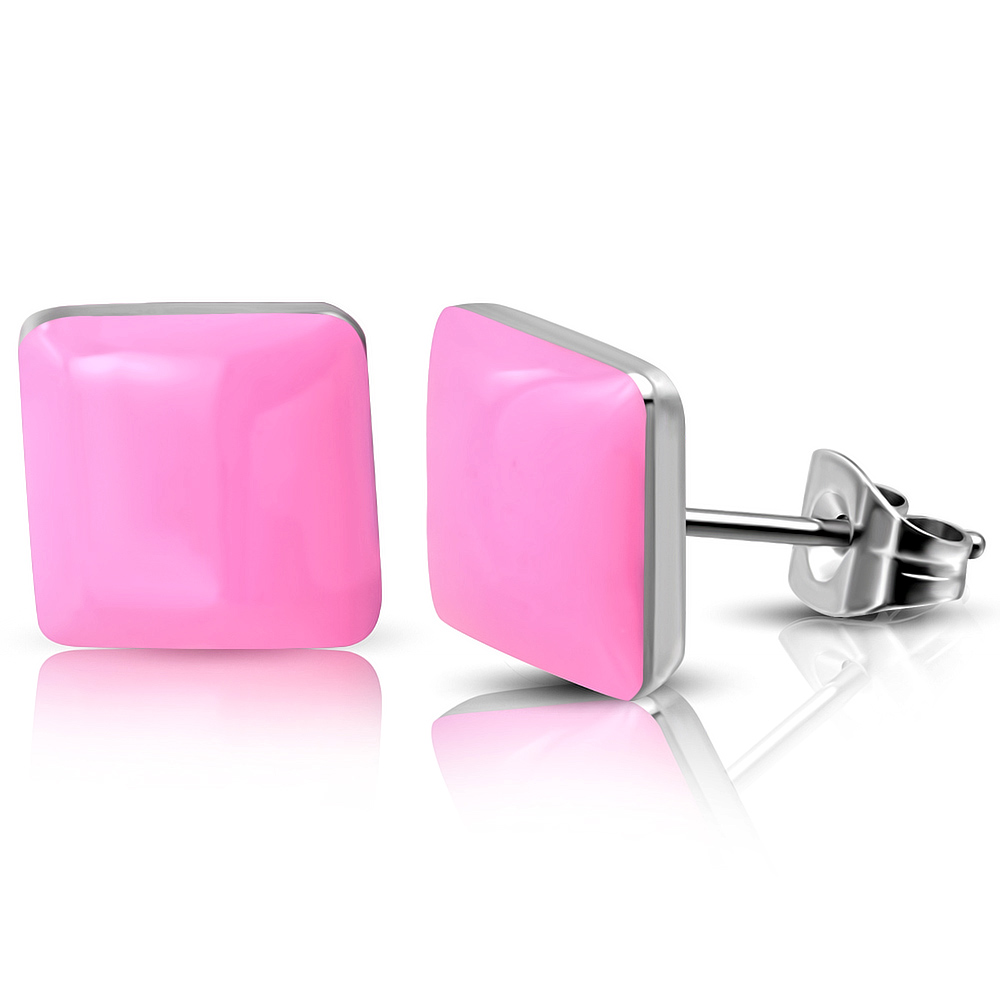 Rózsaszín négyzet alakú nemesacél fülbevaló ékszer
