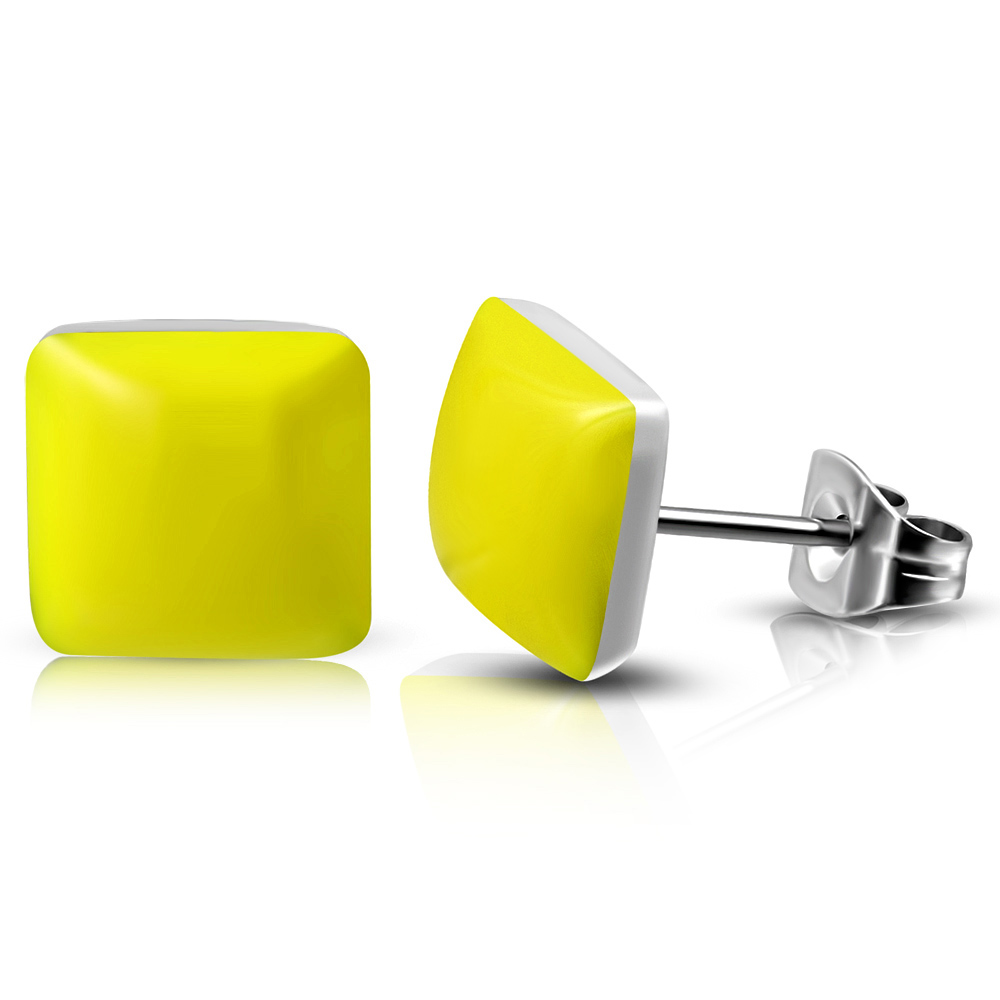Sárga színű négyzet alakú nemesacél fülbevaló ékszer