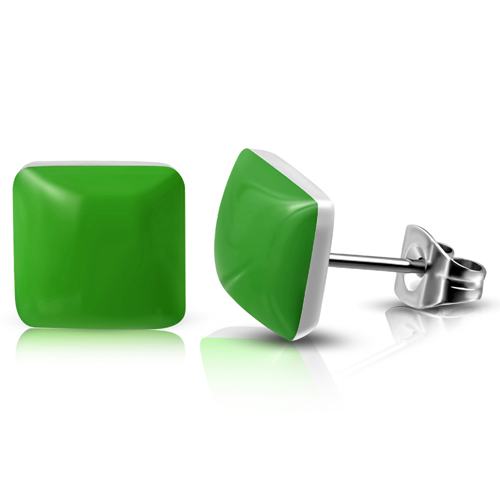 Zöld színű négyzet alakú nemesacél fülbevaló ékszer
