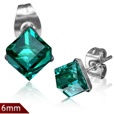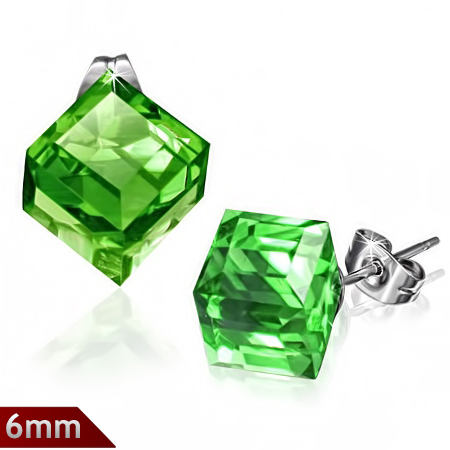 Esmeralda Cirkónia kristályos, kocka alakú nemesacél fülbevaló ékszer