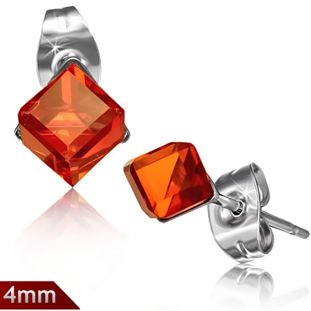 Cirkónia kristályos, kocka alakú nemesacél fülbevaló ékszer