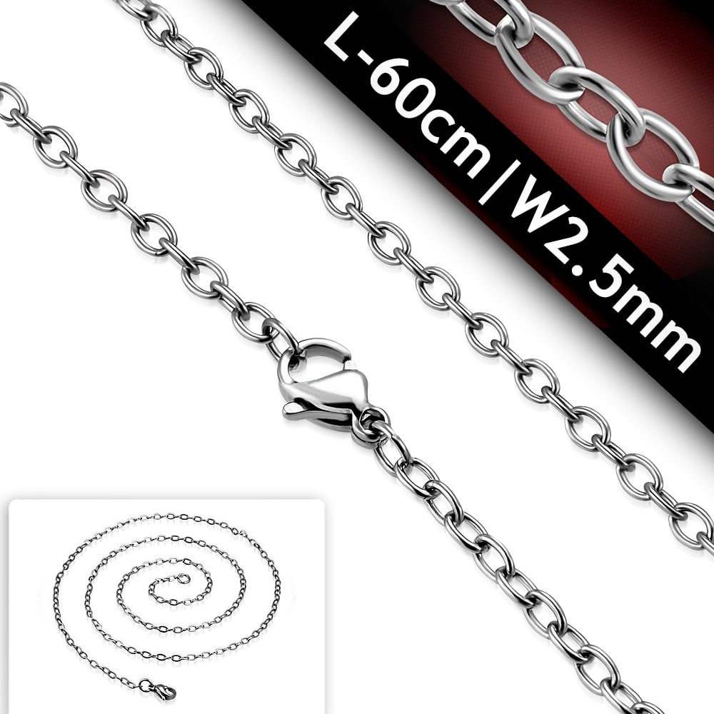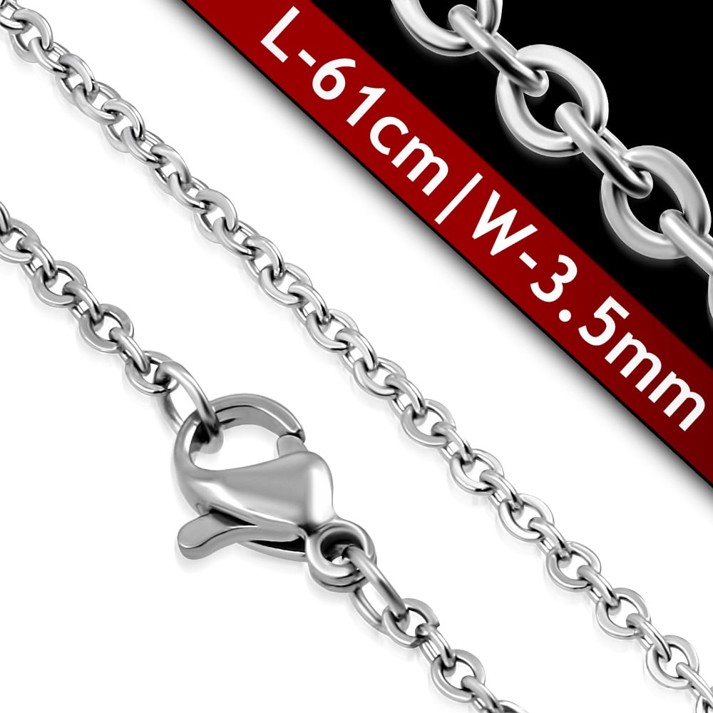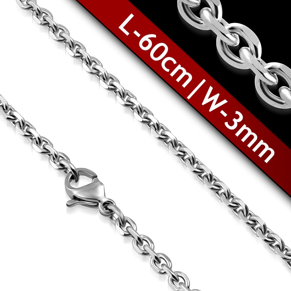 60 cm hosszú, 3 mm széles ezüst színű nemesacél nyaklánc – Baily