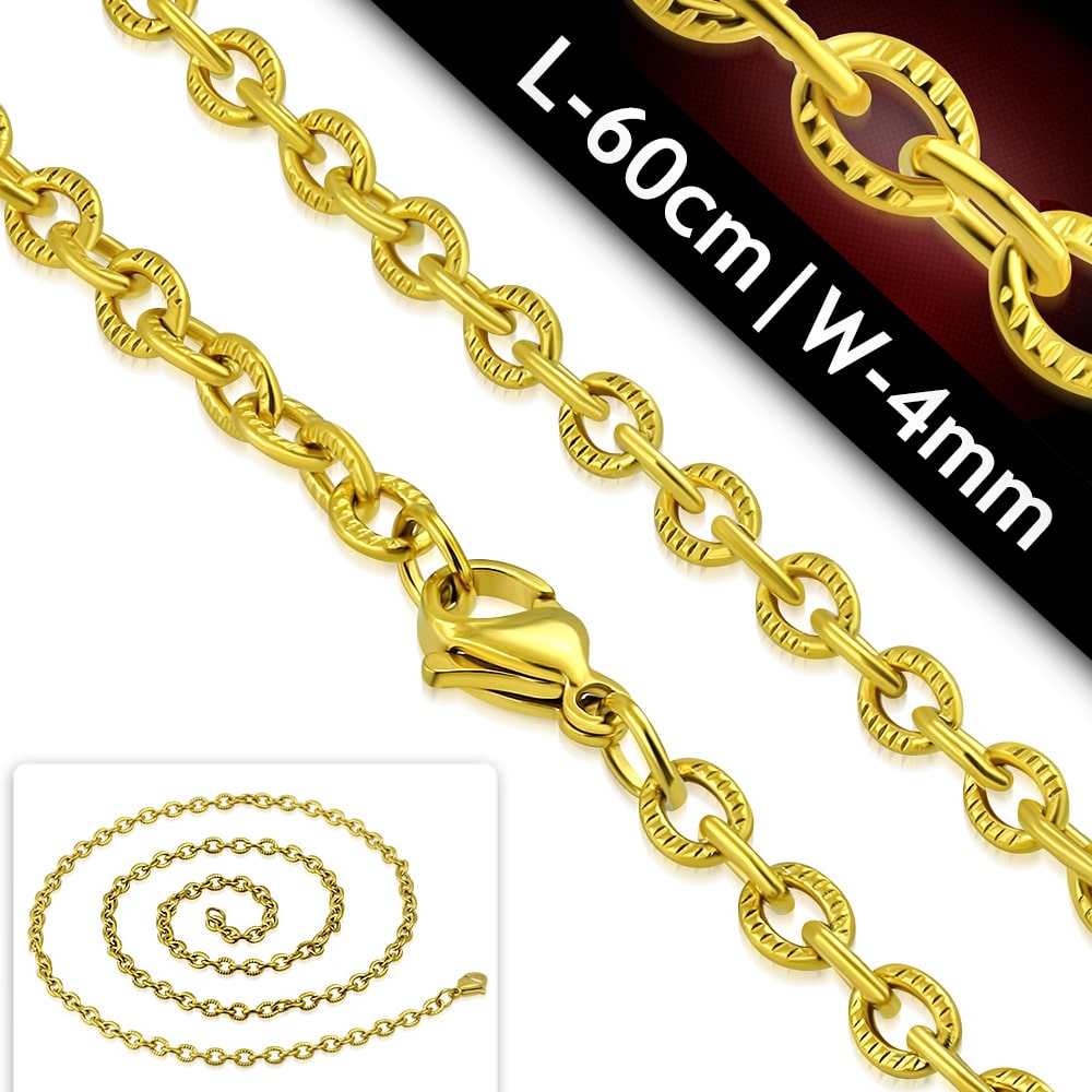 Arany színű nemesacél nyaklánc, csavart szemekkel