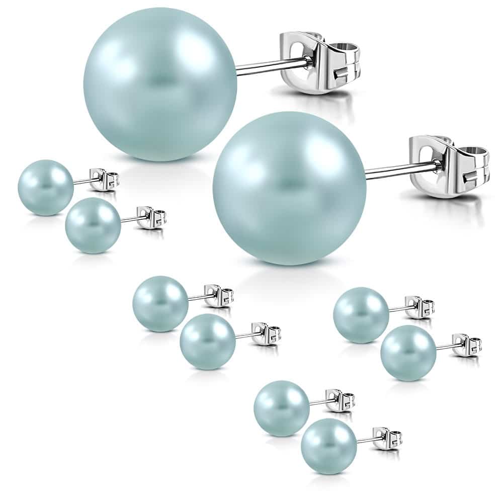 Világoskék színű, metál fényű gyöngy fülbevaló