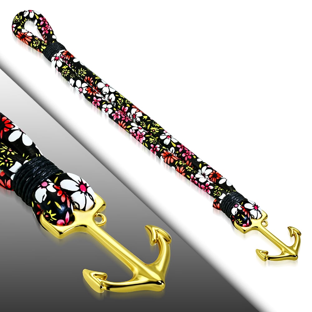 Horgonyos virág mintás bőr karkötő