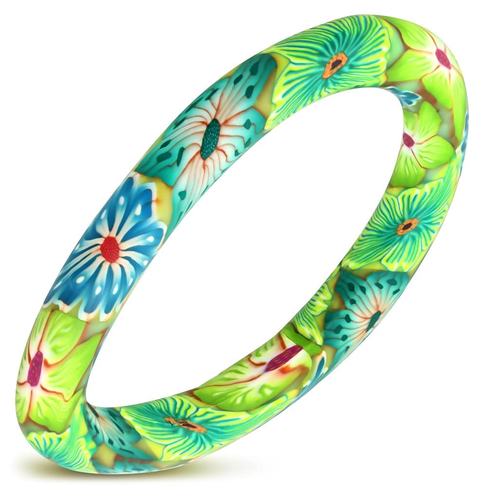 Virágmintás merev karkötő – világoszöld