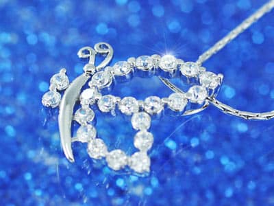 Csillogó Pillangó – Egyedi Elegancia: A cirkónia kövekkel díszített pillangó medál a szimulált gyémántok csillogását idézi meg, hozzájárulva az egyedi és ragyogó megjelenéshez.