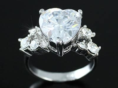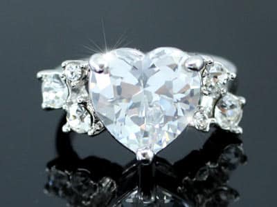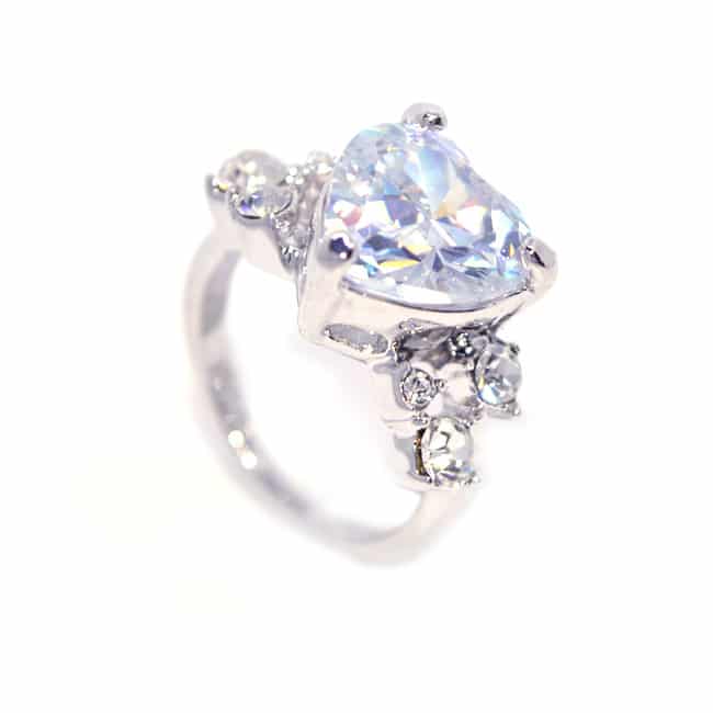 Szives női kristályos gyűrű fehér arany színű bevonattal: