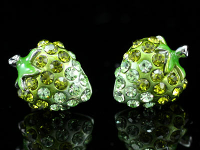 Zöld eper kristályos fülbevaló ajándék díszdobozban